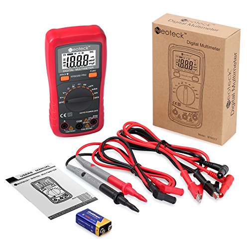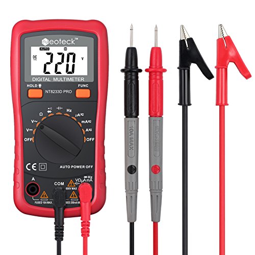 Neoteck PRO MS8233D Multimetro Digitale Auto Range Auto Spegnimento per AC/DC Tensione DC Corrente Resistenza Capacità Frequenza Diodo Transistor Continuità Acustica con LCD Retroilluminazione - Rosso