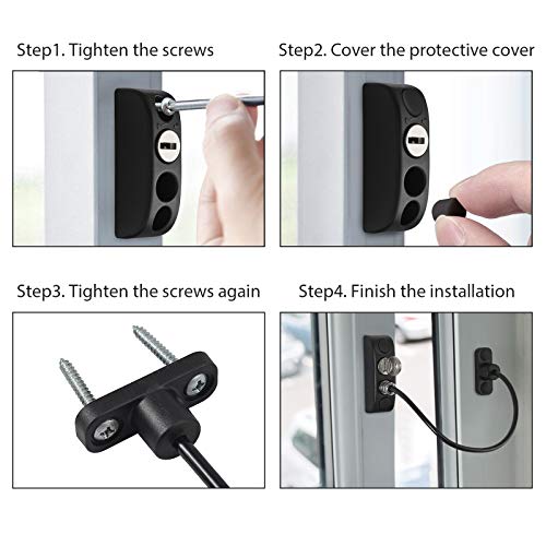Neoteck 2 Pezzi Cavo Limitatore Apertura per Porta e Finestra con Chiavi Window Restrictor Blocco Serratura di Sicurezza per Bambini Sicurezza di Finestra - Nero