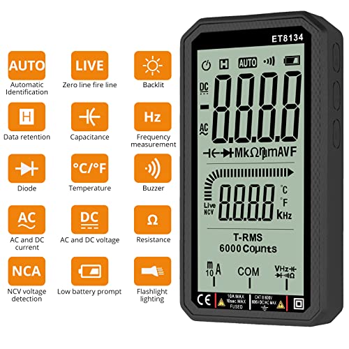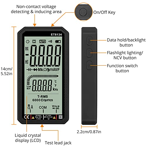 Neoteck 4.7 Pollice Smart Multimetro Digitale DMM 6000 Count TRMS 4.7" LCD Multimetro Intelligente Multitester Misuratore per Temperatura NCV Tensione Corrente AC DC Capacità con Retroilluminazione