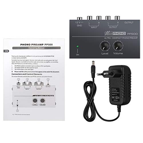 Neoteck Preamplificatore Phono PP500 Ultra-Compatta Phono Preamplificatore con Controlli di Livello e Volume Ingresso e Uscita RCA 1/4 Interfacce di Uscita TRS