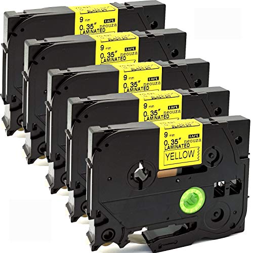 NEOUZA 5PK Compatibile per Brother P-Touch Laminated Tze Tz Label Tape Cartridge 9mm x 8m (TZe-621 Nero su Giallo)