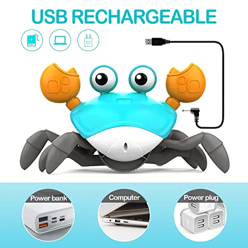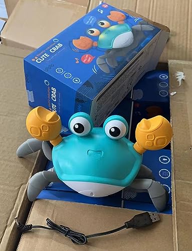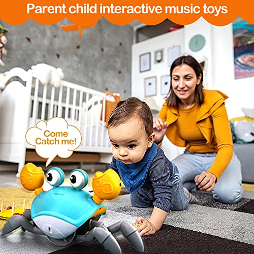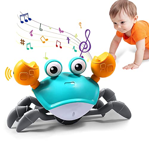 NEOVSUNY Giocattolo di Granchio Che Striscia,Giocattolo 1 Anno per Gattonare con Musica e Luci a LED,Giocattoli Interattivi con Rilevamento Automatico per Evitare Ostacoli