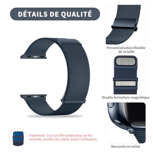 DOPPIA CHIUSURA MAGNETICA: Il design unico del cinturino maglia milanese per Apple Watch, il cinturino non solo è dotato dell' alette di orologio per un' installazione stretta, ma anche di due forti chiusure magnete che mantengono il cinturino vicino alla pelle, offre un' esperienza di indossamento stabile e sicura per Apple Watch.