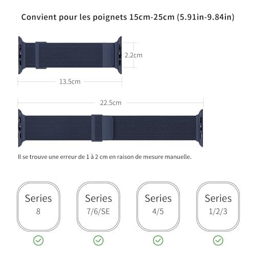 LUNGHEZZA REGOLABILE: I cinturini maglia milanese per Apple Watch possono essere regolati facilmente, da un minimo di 13,5 cm a un massimo di 22,5 cm per adattarsi alla maggior parte dei polsi di uomini e donne, quindi è una buona scelta come un regalo. Se non si è sicuri, è meglio misurare la dimensione del polso prima dell' acquisto.