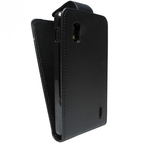 Nera Custodia in Pelle per LG E960 Nexus 4 (LG Mako) - Flip Case Cover