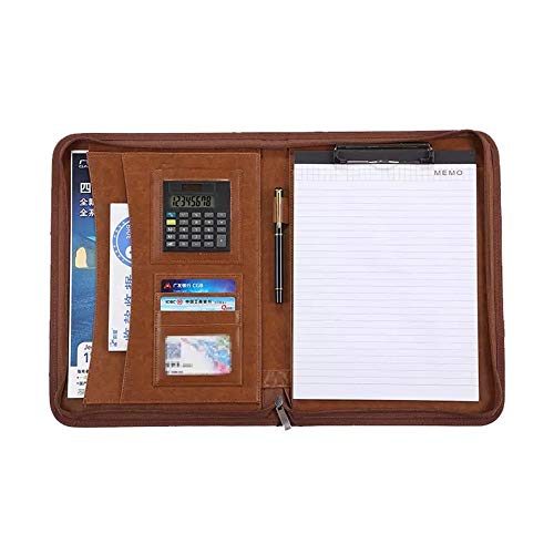 Nero Agenda da ufficio con calcolatrice e cartellina portadocumenti da conferenza Custodia per documenti formato A4 cartellina in pelle per conferenze e lavoro con portablocco tasca interna e carta