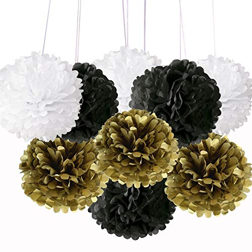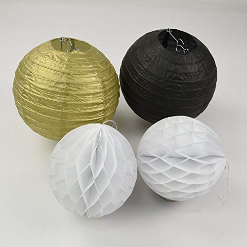 Oro nero bianco fiore di carta velina pompon di carta lanterne di carta a nido d' ape palle decorazione per festa di laurea