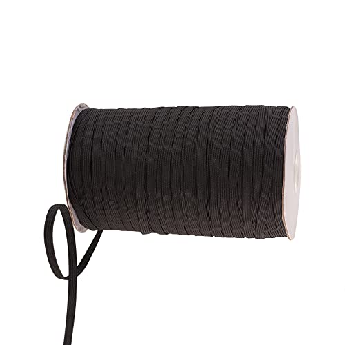 6 mm Nero, Cordino elastico intrecciato piatto elasticizzato per abbigliamento Maschera fai-da-te, 200 iarde/rotolo, 180 metri/rotolo, 600 piedi/rotolo
