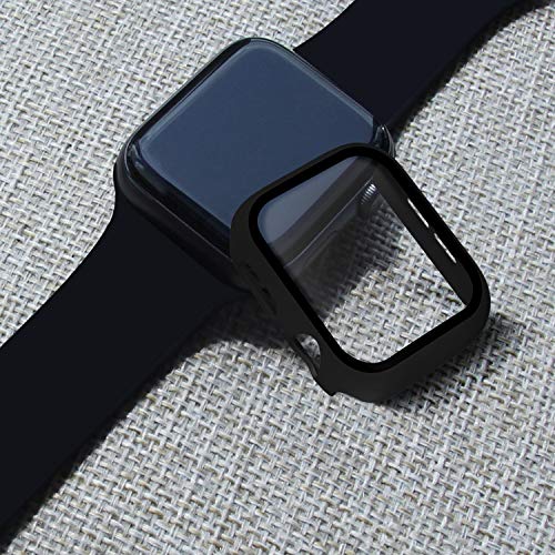 Nero Custodia Protezione Rigida Apple Watch 44mm Serie 5 Serie 4 Protezione Schermo con Vetro Temperato Cover Apple Watch 5 Pellicola Protezione Custodia Integral per Apple Watch Serie 5 Serie 4 44mm
