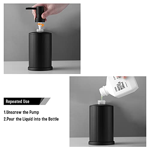 Uso Ripetuto: Il dispenser di sapone nero in piedi da 500 ml ha una grande resistenza alla corrosione quotidiana, può essere usato ripetutamente, e ha una grande capacità, può ridurre i tempi per versare il liquido.Adatto a contenere lozioni, shampoo, gel doccia, disinfettanti per le mani, ecc.
