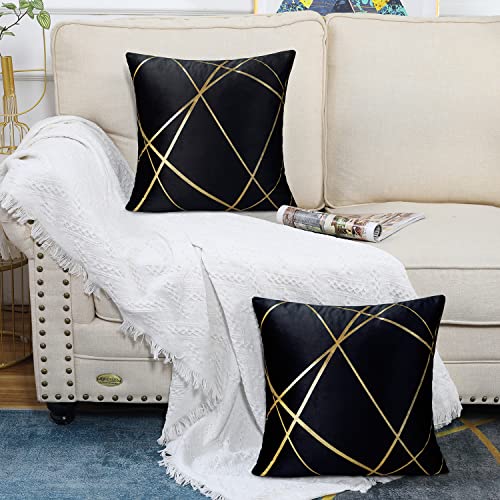 Nero Federe Cuscini 40x40Cm Set di 2 Copricuscini In Velluto Decorativi Quadrati Geometrica Federa Cuscino Divano Federe per Soggiorno Camera Letto Auto Decorazione