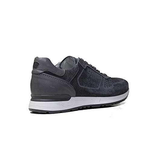 Nero Giardini 00832 Grigio Scarpe Uomo Sneakers Pelle Traforata Made in Italy