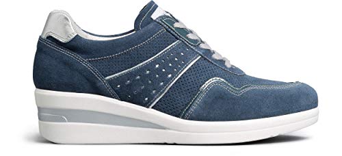 Nero Giardini E010452D Sneakers Donna in Pelle, Camoscio E Vernice - Avio 40 EU