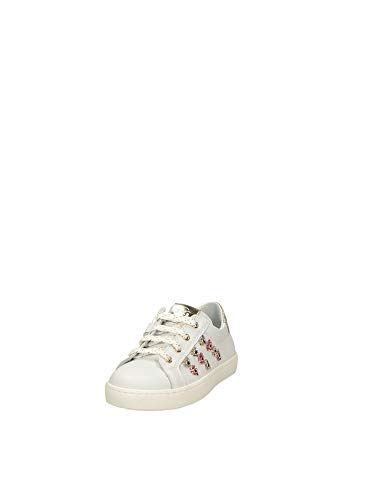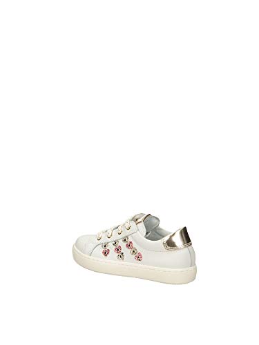 Nero Giardini Sneaker Bambina Art. E121642F, con Lacci e Zip Laterale Color Bianco con Cuori Glitterati. (Numeric_24)