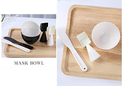 Materiale: plastica. Colore: nero o bianco. Dimensioni: ciotola per maschera: 90 mm x 98 mm. Peso: 48,5 g. Barra per agitare: 188 mm x 29 mm. Peso: 15 g. Cucchiaio: 70 mm x 35 mm. Peso: 16,2 g. Confezione: 1 set (1 set. * Cucchiaio dosatore + 1 x ciotola maschera + 1 x barra di mescolamento).