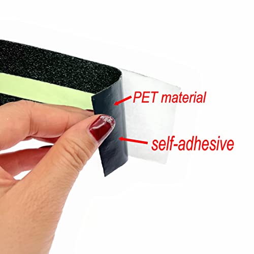 La dimensione di questo nastro antiscivolo per scale è di 5 metri di lunghezza e 5 cm di larghezza. Facile da tagliare a qualsiasi lunghezza. Facile da applicare, basta staccare la pellicola e incollare. Materiale: PET e grana fine, nessun cattivo odore. Adesivo forte e di lunga durata. Può essere utilizzato all'interno e all'esterno.