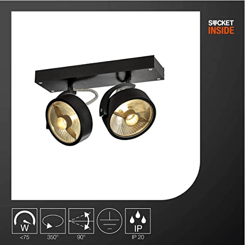 SLV nero plafone KALU/Illuminazione interni, applique, lampada da parete, faretto a soffitto / GU10 75W, 75 W, 2 Strahler