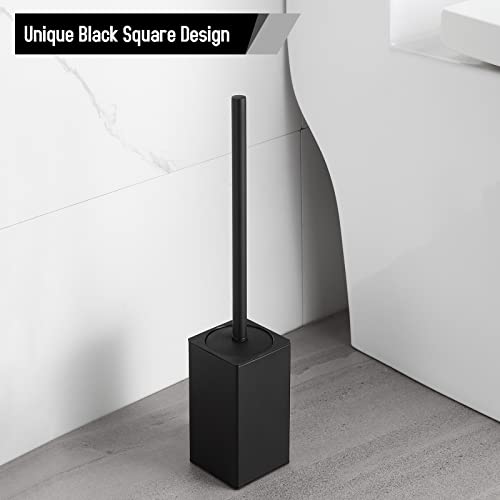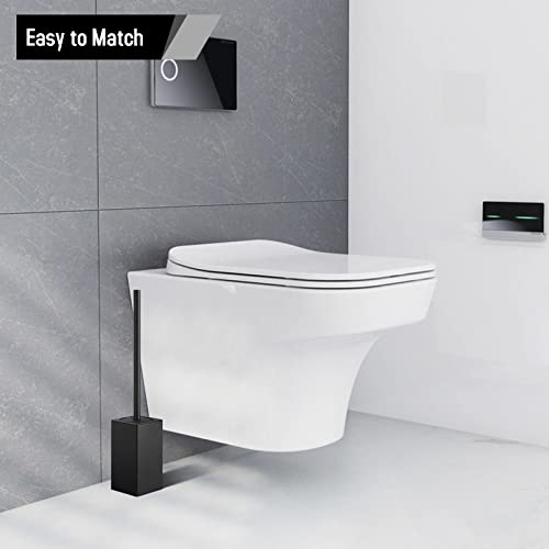 BVL Nero Scopino per WC Acciaio Inossidabile 304 Scopino e Supporto per Toilette con 2 Teste di Spazzola, Spazzola e Supporto Quadrato per la Toilette