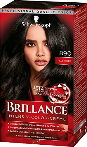 Nero testa BRILLANCE Intensiv-Color Crema 890 Nero Livello 3, con trattamento extra lucido, confezione da 3 (3 x 143 ml)