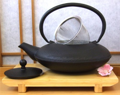 Teiera svasata in ghisa stile Tetsubin, 1 litro, con design circolare