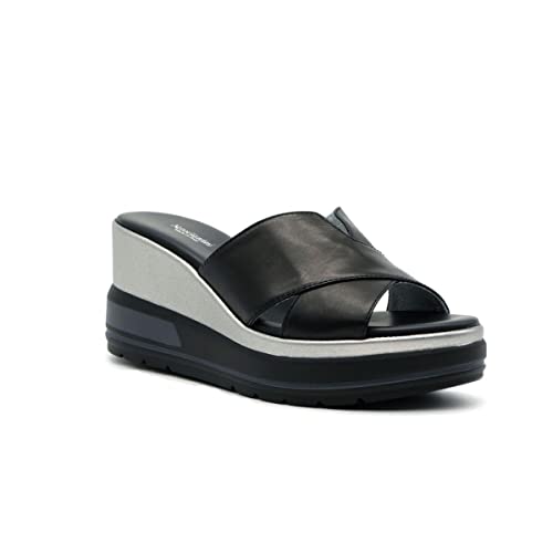 NeroGiardini E218735D Leon Nero Sandali Scalsati per Donna in Pelle con Zeppa Alta (Taglia 37)