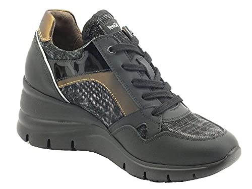 NeroGiardini I116883D Gommato Nero Sneakers Donna in Gomma con Lacci e Lampo Zeppa Alta (Taglia 37)