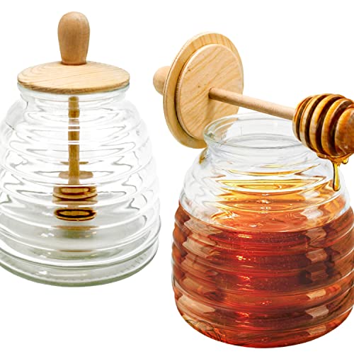Miele Jar con dispenser, che viene fornito anche con un dispenser in legno con quattro scanalature che aiuta a facilmente pulito distribuiscono il miele.
