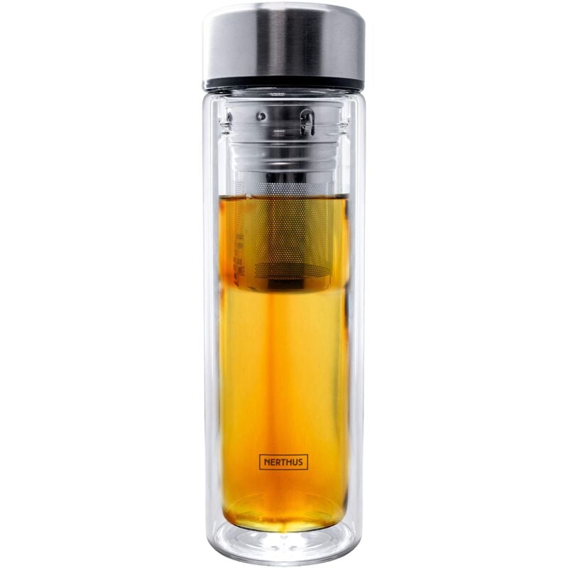 La bottiglia in vetro a doppia parete con filtro in acciaio inossidabile è il modo perfetto per gustare il tè ovunque, per tè sfusi, tè, tè e caffè. Riutilizzabili e privi di BPA, il vetro e l'acciaio inossidabile sono due materiali ecocompatibili che non danno né assorbono alcun sapore e sono facilmente pulibili. Realizzato in vetro borosilicato a doppia parete è resistente e isolato, mantiene le tue bevande calde per ore, il suo tappo è ermetico e realizzato in acciaio inossidabile, ha una custodia in neoprene che lo protegge. Un prodotto funzionale e pratico che lo rende il regalo perfetto per chi ama tè sfusi, tè, tè e caffè.