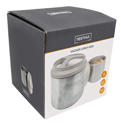 NERTHUS Thermos per Solidi a Doppia Parete in Acciaio Inox, 1 litro di capacità, 18/8, Inox, 1000 ml