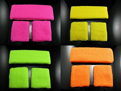 Nesa Ltd Fascia per capelli al neon e bracciali abbinati, fasce per sudore in stile anni '80