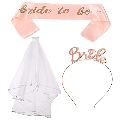 Nesloonp Fascia e Velo da Sposa Addio al Nubilato Sposa con Fascia Oro Rosa Accessori per Feste di Addio al Nubilato Sposa di Essere Fascia Giochi di Addio al Nubilato Decorazione