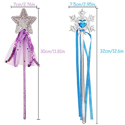 Nesloonp 6 Pezzi Bacchetta Magica Stella Principessa Dress Up Accessori Scettro per Ragazze Costume di Natale Puntelli Forniture per Feste Cosplay, Festa di Halloween (Fiocchi di Neve e Stelle)