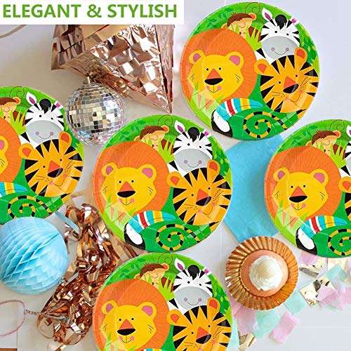 Nesloonp Stoviglie Festa di Compleanno Animali della Giungla Compleanno Decorazione Animali della Foresta Stoviglie Forniture Stoviglie Carta Jungle Party Piatti Bicchieri Tovaglia (53 Pezzi)