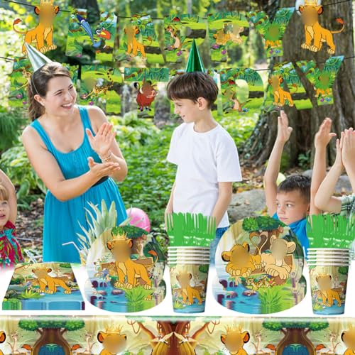 【Set di stoviglie del partito 】: È possibile ottenere un piatto del partito 10 x 9 ", 20 tovaglioli, 10 tazze del partito, 10 x 7" piatto del partito e 1 tovaglia del partito del Leone.
