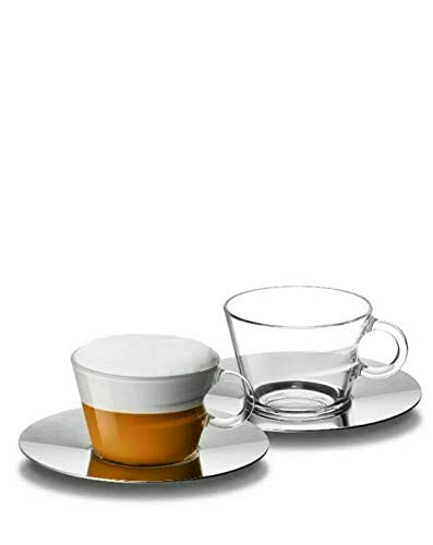 Set di 2 tazze da cappuccino in vetro temperato (circa 170 ml) e piattini in melamina bicolore (nero e antracite) - Rif. 3390/2