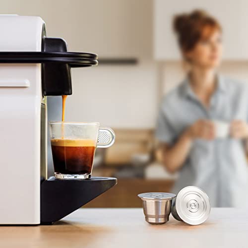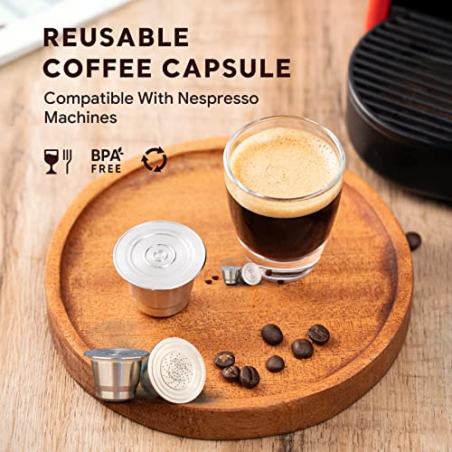 NespressoCapsule Ricaricabili in Acciaio INOX,Riutilizzabile Capsule pernespresso,Pennello+Cucchiaio (Capsula+Tamper+Powder Filling Aid)