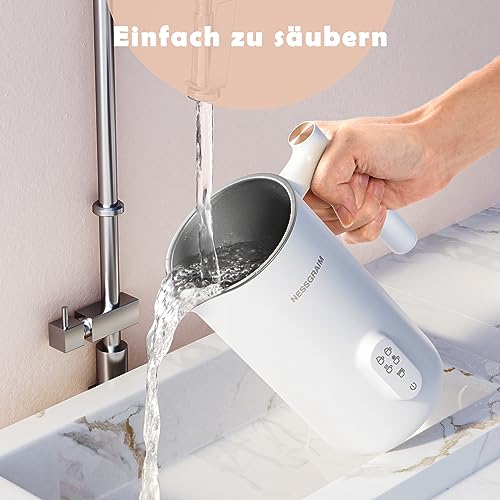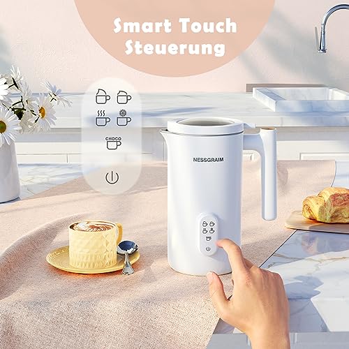 NESSGRAIM Montalatte 5 in 1 con controllo touch, montalatte elettrico extra grande, per latte cappuccino, cioccolata calda, 500 ml, bianco