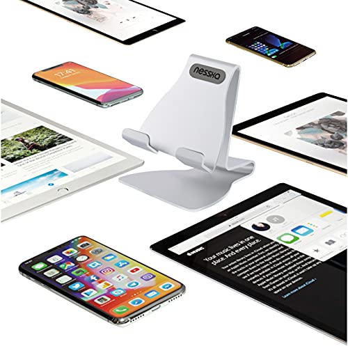 NessKa Supporto da tavolo per tablet, da comodino, per eBook e ufficio, cucina, adatto per iPad 10.2 10.9 Air Pro, Samsung Galaxy Tab A A7 S6 S7 Huawei Nintendo Switch ecc. | Argento
