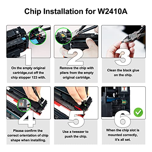 1.【Necessita di chip OEM】 Questa cartuccia di toner NON include i chip, dovrai riutilizzare il chip del toner originale HP fornito con la stampante per utilizzare questo toner compatibile. Lo strumento per rimuovere il chip viene fornito con questa cartuccia di toner, seguire le linee guida o il video. Contenuto dell'articolo: 4 confezioni di cartucce toner compatibili W2410A W2411A W2412A W2413A (216A) senza chip, con strumento.