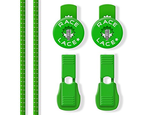 Nessun sistema di allacciamento - Lacci da gara senza allacciamento con chiusura elastica per la corsa e Triathlon. Lacci autobloccanti per scarpe che Assicurano sicurezza mentre si corre - 6 colori disponibili (3 x Verde fluorescente)