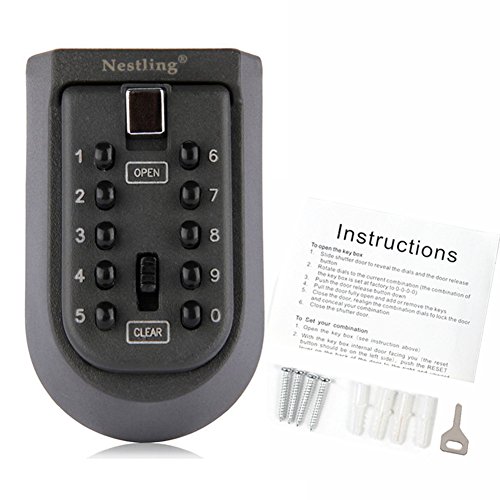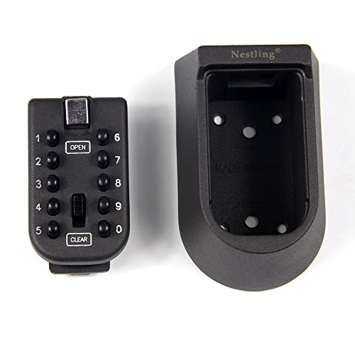 Nestling - Cassetta a parete con serratura digitale a combinazione e tastiera, per interni ed esterni, involucro in gomma e accessori per fissaggio a parete, adatta per 5-7 chiavi a mortasa, colore: Nero