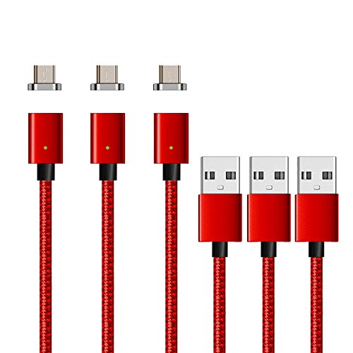 NetDot Gen7 Cavo Magnetico di Ricarica e Trasferimento Dati Compatibile Smartphone Android e i-Product (1.5M / 3 Pack Rosso)