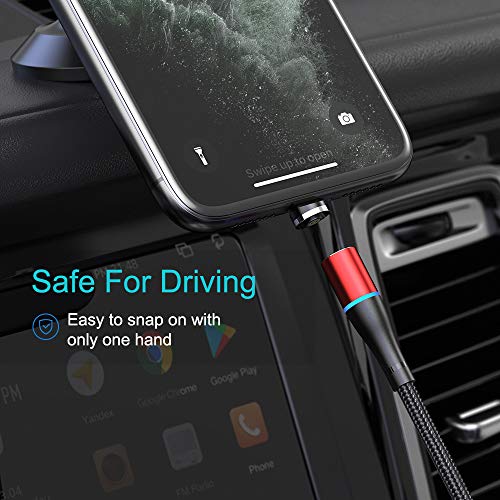 NetDot Gen9 Cavo di Ricarica Magnetico [3-Pack,2M,Rosso] Caricatore Magnetico Intrecciato in Nylon con Luce a LED, Compatibile con Micro USB e Smartphone di Tipo C