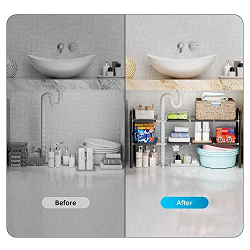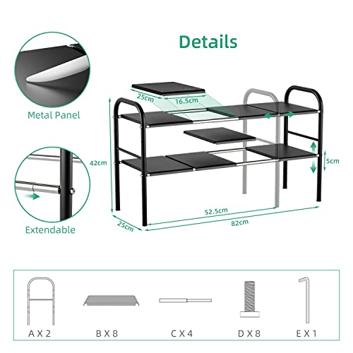 NETEL Scaffale Sottolavello Cucina Estensibile, Organizer Sottolavello Cucina a 2 Livelli, Ripiano Salvaspazio Cucina, con 8 Piastre Metalliche Rimovibili, Lunghezza 52-82cm, Nero
