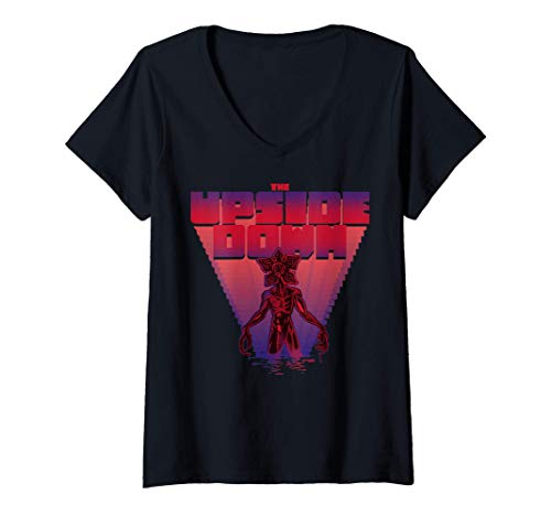 Netflix Stranger Things The Upside Down 8-Bit Demogorgon Maglietta con Collo a V