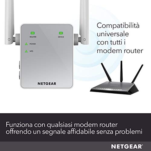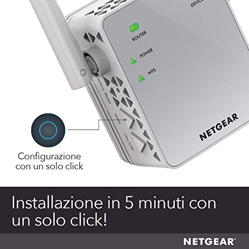 NETGEAR EX3700-100PES Ripetitore Wifi 750 Mbps, Wifi Extender e Access Point Dual Band, Porta Lan, Amplificatore Wifi Compatibile con Modem Fibra e Adsl, Argento