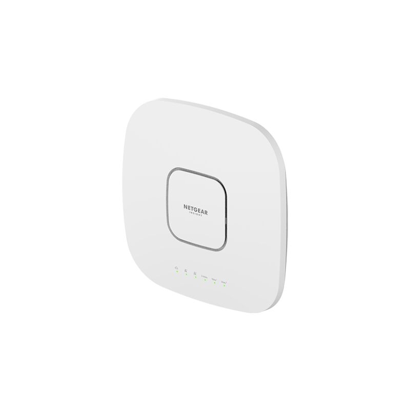 Netgear WAX630. Velocit massima di trasferimento dati: 6000 Mbit/s, Velocit massima di trasferimento dati (2,4 GHz): 1200 Mbit/s, Velocit massima di trasferimento dati (5 GHz): 2400 Mbit/s. Algoritmi di sicurezza supportati: EAP-TLS,PEAP,SSL/TLS,TTLS,WPA,WPA2,WPA3, Funzioni SSID (Service Set Identifier): Trasmissione SSID, Attivazione/disattivazione della trasmissione SSID. Voltaggio di uscita: 12 V, Corrente duscita: 3,5 A. Installazione: Soffitto, Parete, Colore del prodotto: Bianco. Tipo di antenna: Interno, Livello di guadagno dellantenna (max): 4,3 dBi