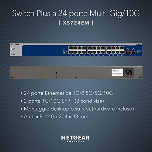 NETGEAR XS724EM Switch Smart Managed Plus a 24 Porte 10G/Multi-Gigabit, con 2 SFP+ 10G, Montaggio su Desktop/Rack