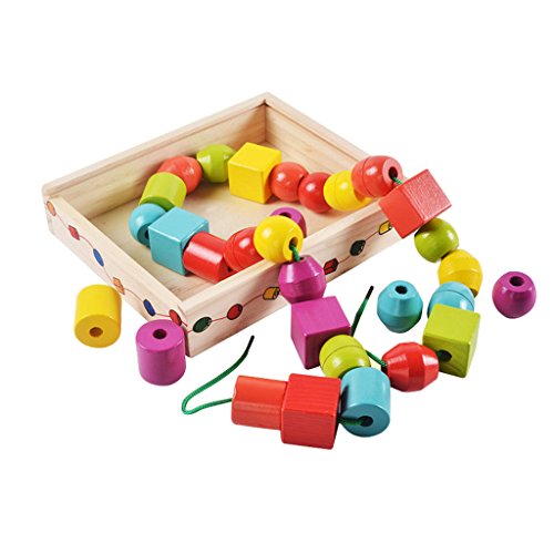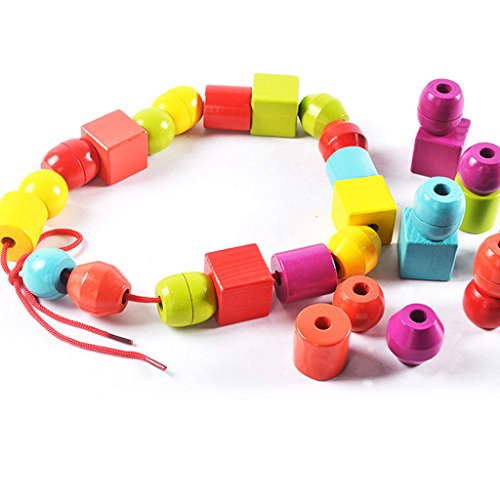 Netspower Perline Stringing Legno, Colorati Giocattoli di Legno Che Mette Insieme Gioco Giocattolo del Bambino Geometria Forma Perle Misti per I Bambini Regalo