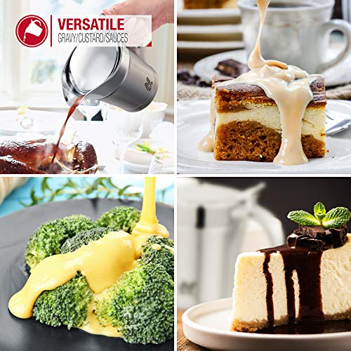 Multiuso: perfetto per cene di Natale, sughi e altre salse, o dessert come crema pasticcera, panna e altro ancora. Caldo o freddo, questa brocca con beccuccio manterrà i tuoi liquidi alla temperatura desiderata. Basta riempire e portare a tavola.